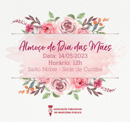 A APMP novamente convida as associadas, os associados e seus familiares para celebrar juntos o Dia das Mães no tradicional almoço promovido pela Associação. A confraternização será no dia 14 de maio, a partir das 12h, no Salão Nobre da sede de Curitiba.