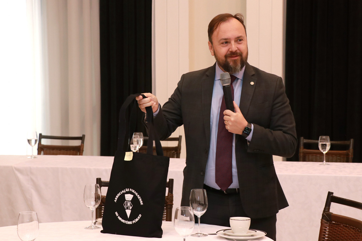 Na solenidade de posse, que ocorreu no MPPR na última sexta-feira, estavam presentes na mesa: o procurador-geral de Justiça, Gilberto Giacoia; o subcorregedor-geral do MPPR, Paulo Sérgio Markowicz de Lima; o presidente da Associação Paranaense do Ministério Público (APMP), André Tiago Pasternak Glitz; os ex-procuradores-gerais de Justiça Olympio de Sá Sotto Maior Neto e Ivonei Sfoggia; o procurador de Justiça Humberto Eduardo Pucinelli, representando a Subprocuradoria-Geral de Justiça para Assuntos Jurídicos; a promotora de Justiça Mabiane Czarnobai Message, representando a Subprocuradoria-Geral de Justiça para Assuntos de Planejamento Institucional; o promotor de Justiça Hugo Evo Urbano, representando a Subprocuradoria-Geral de Justiça para Assuntos Administrativos; o subdefensor público-geral do Paraná, Bruno Müller; o integrante da OAB Paraná William Pugliese; e os desembargadores Cláudio Smirne Diniz, Luiz Fernando Tomasi Keppen e Paulo Vasconcelos.