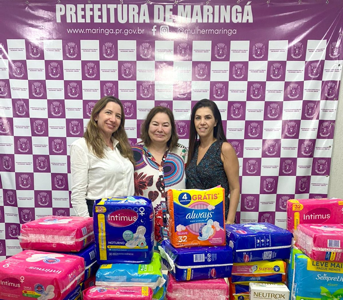 Em continuidade a iniciativa de arrecadação de itens de higiene básica para mulheres, ação que foi realizada desde a primeira edição do curso de defesa pessoal, as associadas e dependentes contribuíram com a doação de absorventes, shampoo, condicionador, sabonetes, fitas dentais, giletes, antisséptico bucal e desodorantes. A entrega da doação ocorreu nesta terça-feira (02/08), em Maringá, e foi feita pelas promotoras de Justiça Alessandra Sandri Klock do Passo e Michele Nader. A secretária da mulher de Maringá, Terezinha Pereira, recebeu os itens, que serão distribuídos ao programa “Dignidade e Proteção”. O projeto é realizado pela Secretaria da Mulher da Prefeitura de Maringá e tem como objetivo distribuir absorventes às pessoas que menstruam e se encontram em situação de vulnerabilidade social.