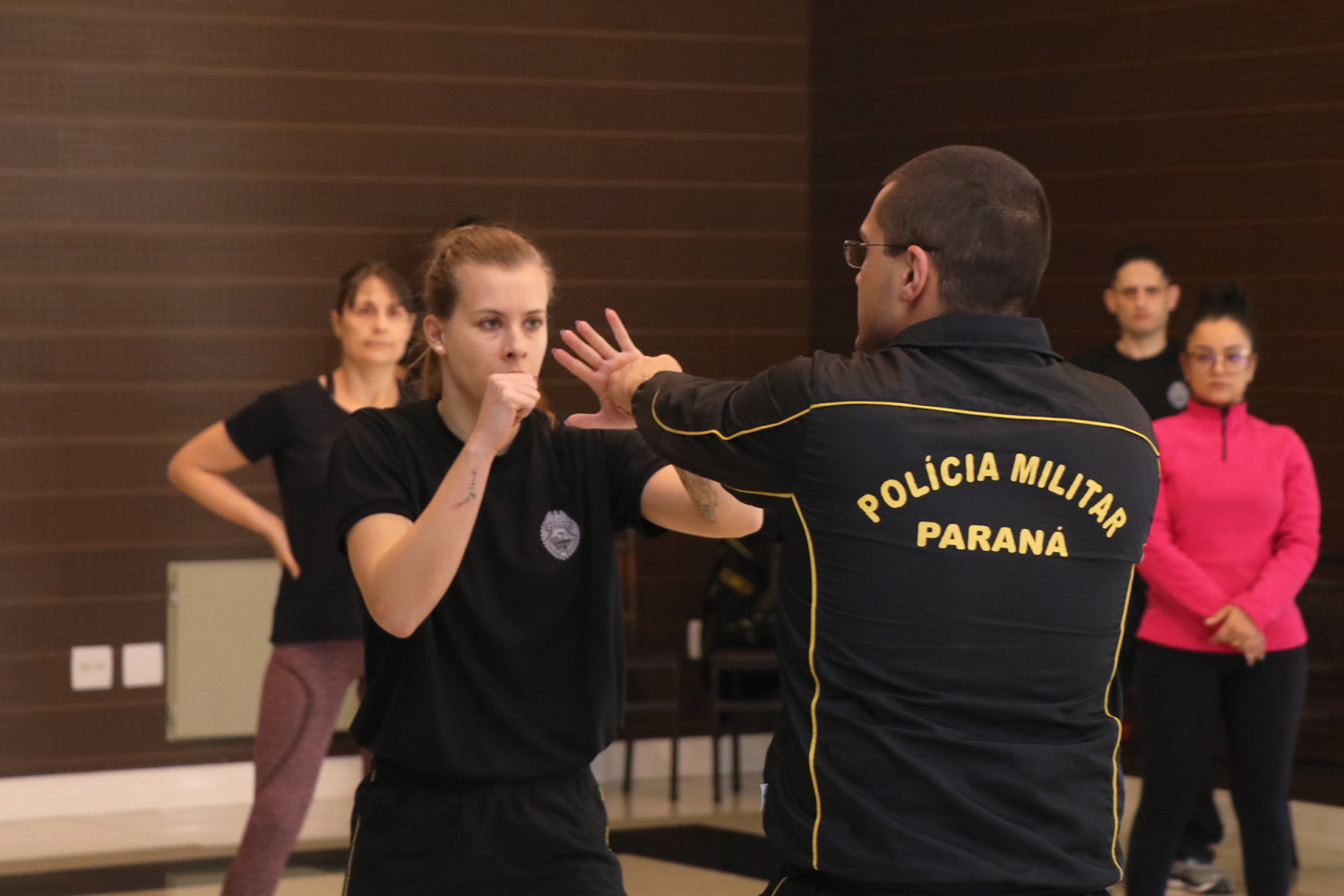 A Diretora de Mulheres Associadas da APMP, Mariana Dias Mariano, esteve presente na ocasião. O Tenente Cochek e a Tenente Jéssica foram os instrutores da aula, que também contou com o apoio do Major Caron, e do Cabo P. Nascimento, todos membros da Assessoria Militar do MPPR.