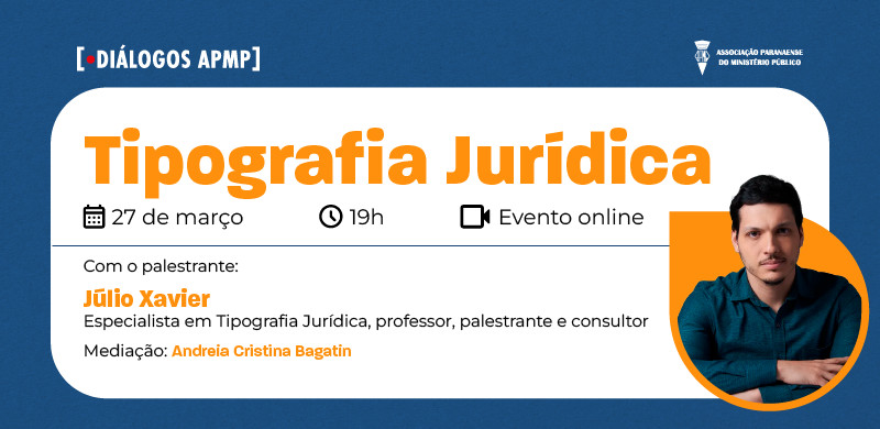 Estão abertas as inscrições para a 5ª edição do Diálogos APMP, que desta vez abordará o tema “Tipografia Jurídica e os seus reflexos na construção e na fluidez do texto jurídico”. O evento ocorrerá no dia 27/03, às 19h, em formato on-line. Clique aqui para confirmar sua participação.