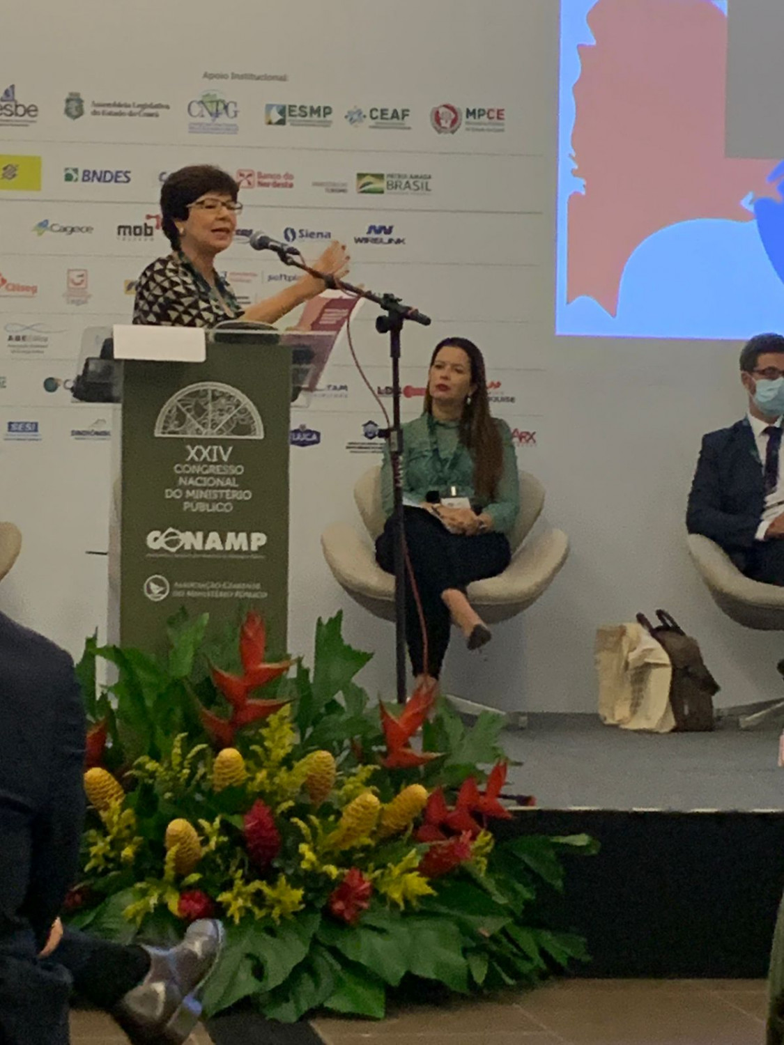 Uma das mulheres que palestrou durante o Congresso foi a procuradora de Justiça, Ivana Farina. Ela ministrou a palestra sobre “Justiça sem preconceito e estereótipos - Protocolo para julgamento com perspectiva de gênero”, documento que ajudou a desenvolver como coordenadora do GT, com representantes de diferentes ramos de Justiça e de universidades. O protocolo tem 120 páginas contendo explicação de conceitos, apresentação de casos, e até um passo a passo para que as interpretações sejam o menos possível contaminadas pela parcialidade e o machismo estrutural ainda presente na sociedade. “O Ministério Público não pode comungar com essas ondas discriminatórias e preconceituosas porque nós somos os defensores do Estado Democrático de Direito que é fincado na dignidade da pessoa humana”, afirmou.