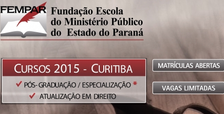 A Fundação Escola do Ministério Público do Estado do Paraná (FEMPAR) está com as inscrições abertas para os cursos de Pós-Graduação/Especialização e Atualização em Direito (válido como um ano de prática jurídica) para as unidades Curitiba e Londrina.