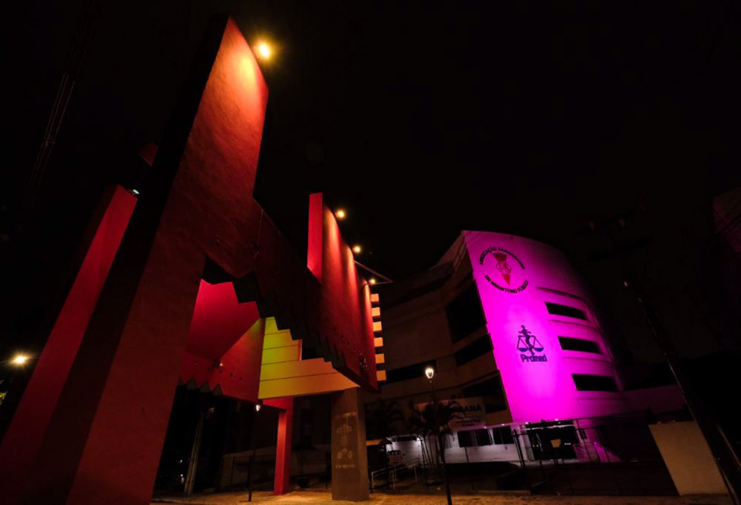 Além de toda a fachada externa, a APMP iluminou de rosa também a recepção do segundo andar da sede de Curitiba.