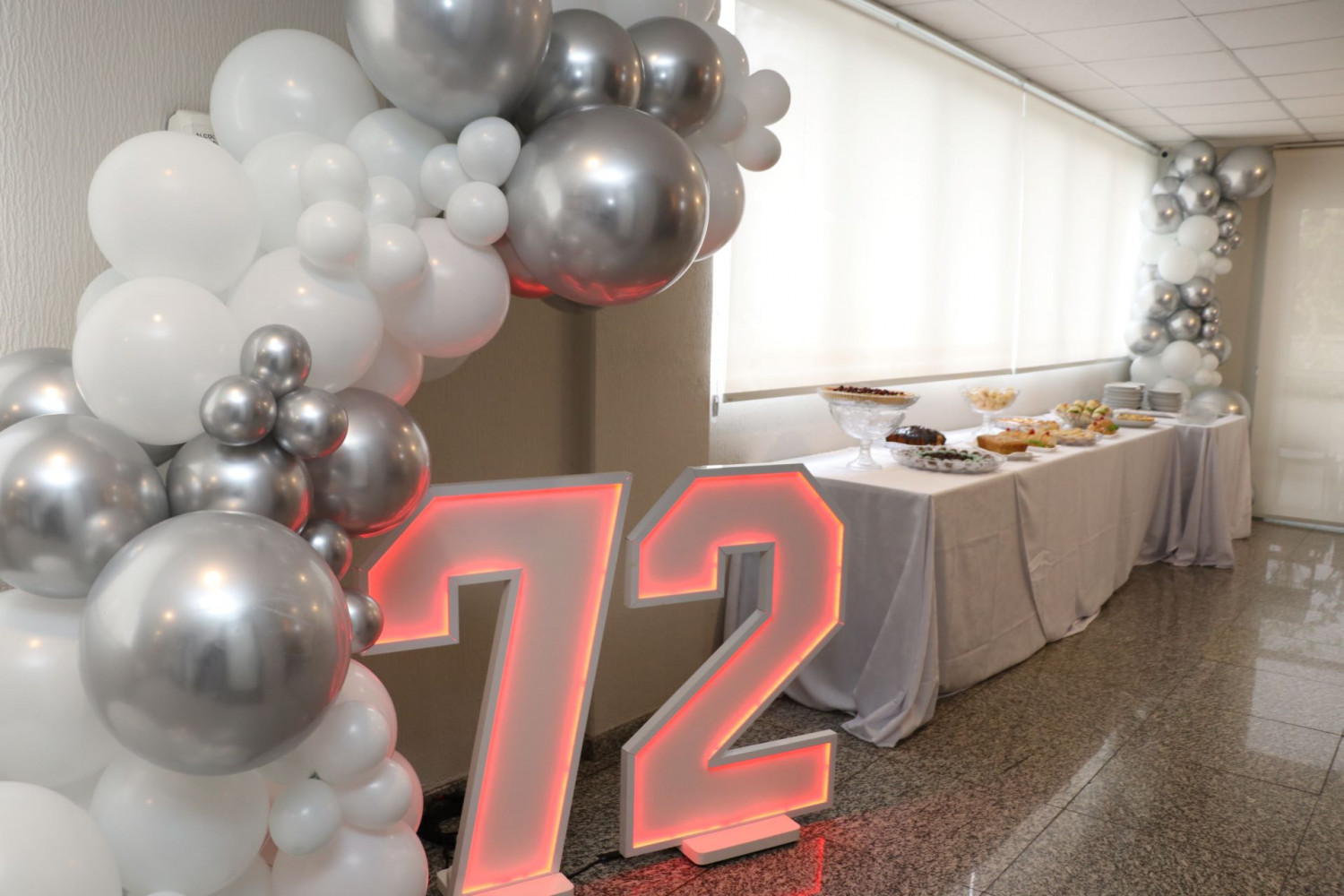 A programação ocorreu das 10h às 17h, no hall do 2º andar, com mesa de café, bolos e pratos salgados, além de uma decoração preparada para a celebração do aniversário.