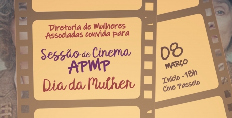 A APMP, por meio da Diretoria de Mulheres, promoverá o evento “Sessão de Cinema APMP – Dia da Mulher”, no dia 08 de março, às 18h, no Cine Passeio, em comemoração ao Dia Internacional da Mulher.