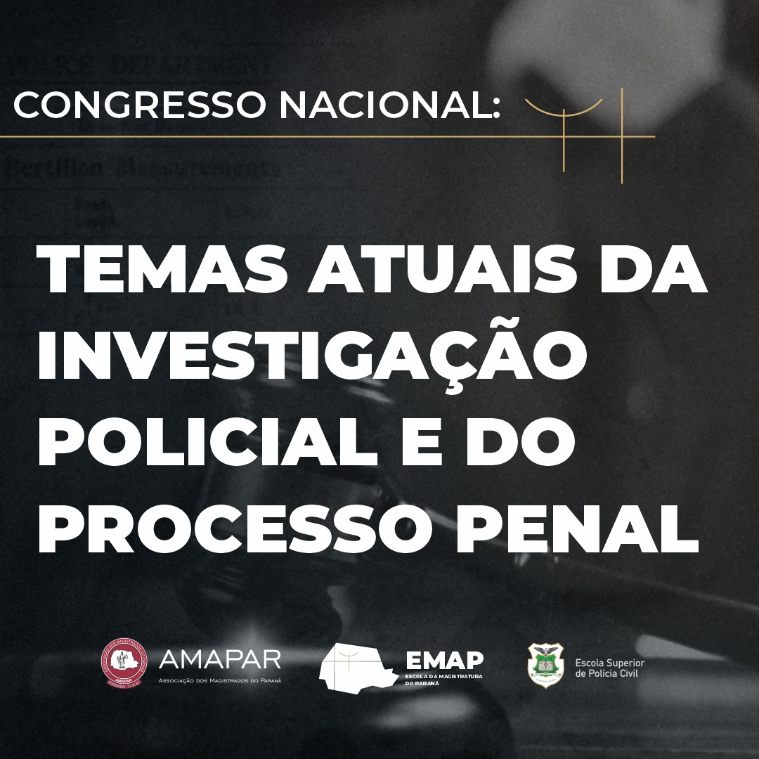 A Diretoria de Desenvolvimento Acadêmico da APMP convida associados e associadas a participarem do Congresso Nacional da Escola da Magistratura do Paraná (EMAP) e Escola Superior da Polícia Civil do Paraná (ESPCPR), que ocorre nos dias 21, 22 e 23 de novembro de 2024, no Museu Oscar Niemeyer e na EMAP. O evento tratará de Temas Atuais da Investigação Policial e do Processo Penal.