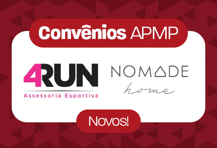 A APMP acaba de firmar parcerias com a 4Run Assessoria Esportiva e a Nomade Home para garantir condições especiais a associados, associadas e dependentes. Saiba mais a seguir: