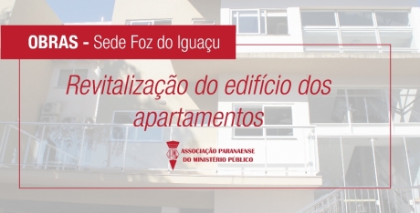 A APMP realizará uma obra de manutenção do edifício dos apartamentos da sede de Foz do Iguaçu. A obra está prevista para começar na primeira quinzena de agosto de 2020 e tem como objetivo a revitalização e a pintura do edifício. Vale ressaltar que a sede de Foz do Iguaçu, após a inauguração das novas acomodações, é uma das sedes mais utilizadas pelos associados e dependentes.