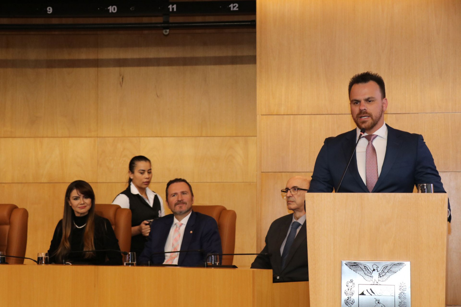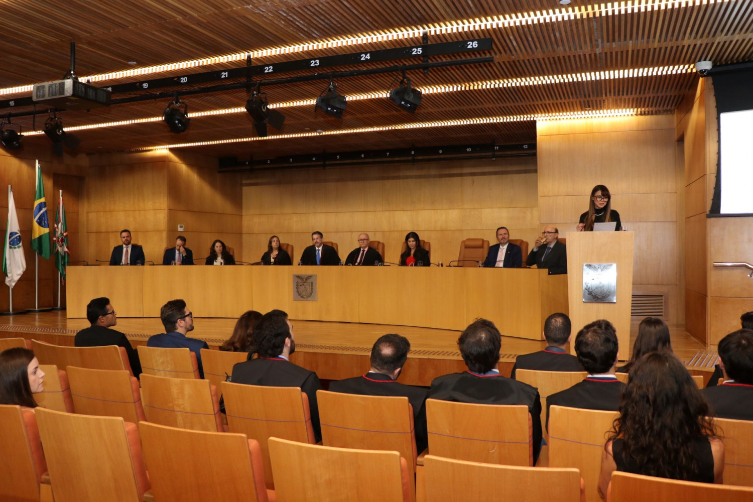 Durante o discurso, Ticiane destacou os desafios enfrentados pelos integrantes da turma desde o ingresso na instituição, em 2021, período marcado pelas transformações impostas pela pandemia. Falando como paraninfa da turma e em nome da APMP, incentivou os novos vitaliciados a exercerem a função com sensibilidade e compromisso com a sociedade.