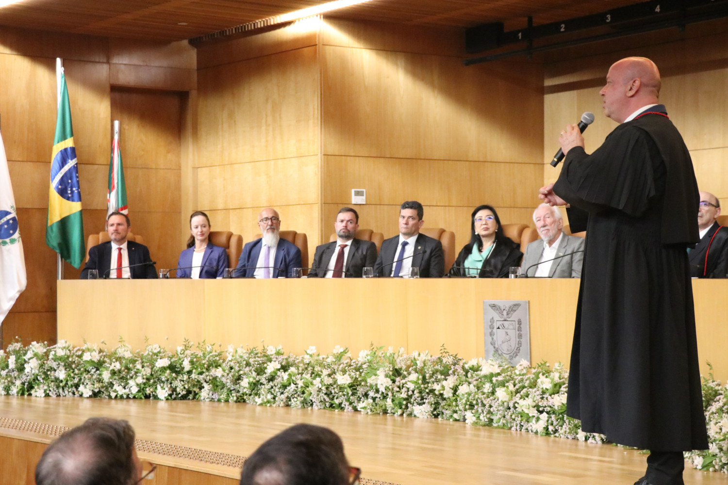 Durante o ato, o Presidente da APMP integrou a mesa de autoridades e fez uso da palavra. Também participaram da composição o Vice-Governador do Paraná, Darci Piana, o Presidente da Associação Nacional dos Membros do Ministério Público (CONAMP), Tarcísio José Bonfim; o Procurador-Geral de Justiça do Rio Grande do Sul, representando o Conselho Nacional dos Procuradores-Gerais de Justiça dos Estados e da União, Alexandre Saltz; o Conselheiro do Conselho Nacional do Ministério Público (CNMP), Alexandre Magno de Lacerda; o Senador Sérgio Moro; e a Presidente do Tribunal de Justiça do Paraná, Lidia Maejima; além do ex-Procurador-Geral de Justiça e decano do MPPR, Milton Riquelme de Macedo; o Conselheiro do Tribunal de Contas do Paraná, Fernando Augusto Guimarães; o Corregedor-Geral do MPPR, Ney Roberto Zanlorenzi; a Presidente em exercício da OAB Paraná, Graciela Iurk Marins; o Defensor Público-Geral do Paraná, Matheus Cavalcanti Munhoz; e o Presidente do Tribunal Regional Eleitoral do Paraná, Luciano Carrasco Falavinha Souza