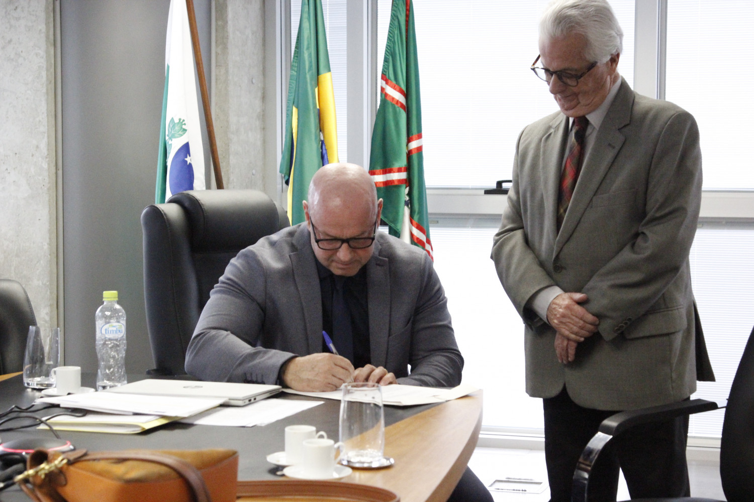 A Presidente Symara Motter e o 1º Vice-Presidente Fernando da Silva Mattos participaram, nesta quarta-feira (18), de uma homenagem realizada por ocasião da assinatura do ato de aposentadoria do Procurador Francisco José Albuquerque de Siqueira Branco pelo Procurador-Geral de Justiça, Francisco Zanicotti.