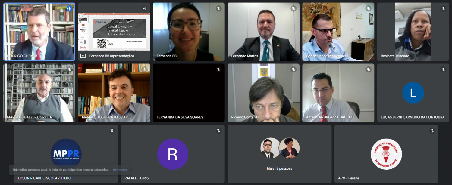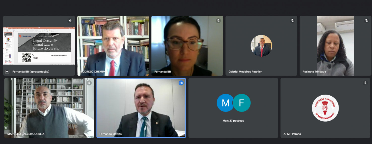 O Grupo de Pesquisa de Inovação, Direito e Novas Tecnologias do Ministério Público do Paraná se reuniu, na manhã desta quinta-feira (3). O encontro ocorreu de maneira on-line e contou com a participação do 1º Vice-Presidente da APMP, Fernando da Silva Mattos, do Diretor de Inovação e Tecnologia, Marcos Porto Soares, e do Procurador de Justiça Rodrigo Régnier Chemim Guimarães, Coordenadores do Grupo.