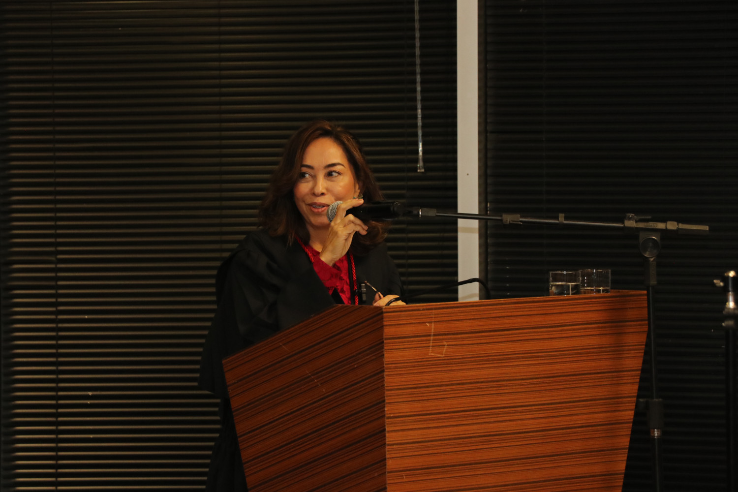 Em seu discurso, Symara Motter enfatizou a importância da promoção da equidade de gênero nas instituições públicas, destacando o papel transformador de ações afirmativas no avanço da representatividade feminina nos espaços de decisão.