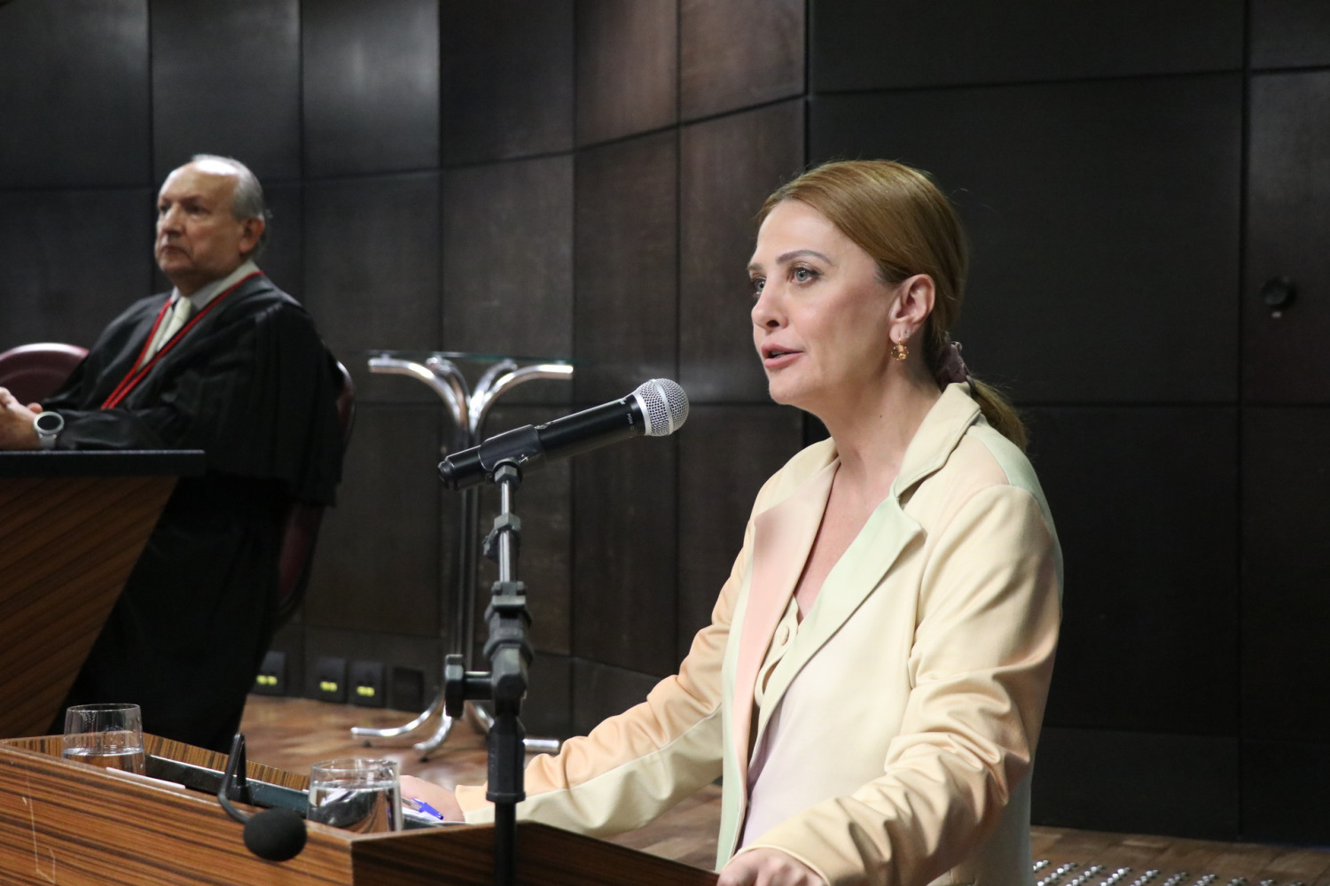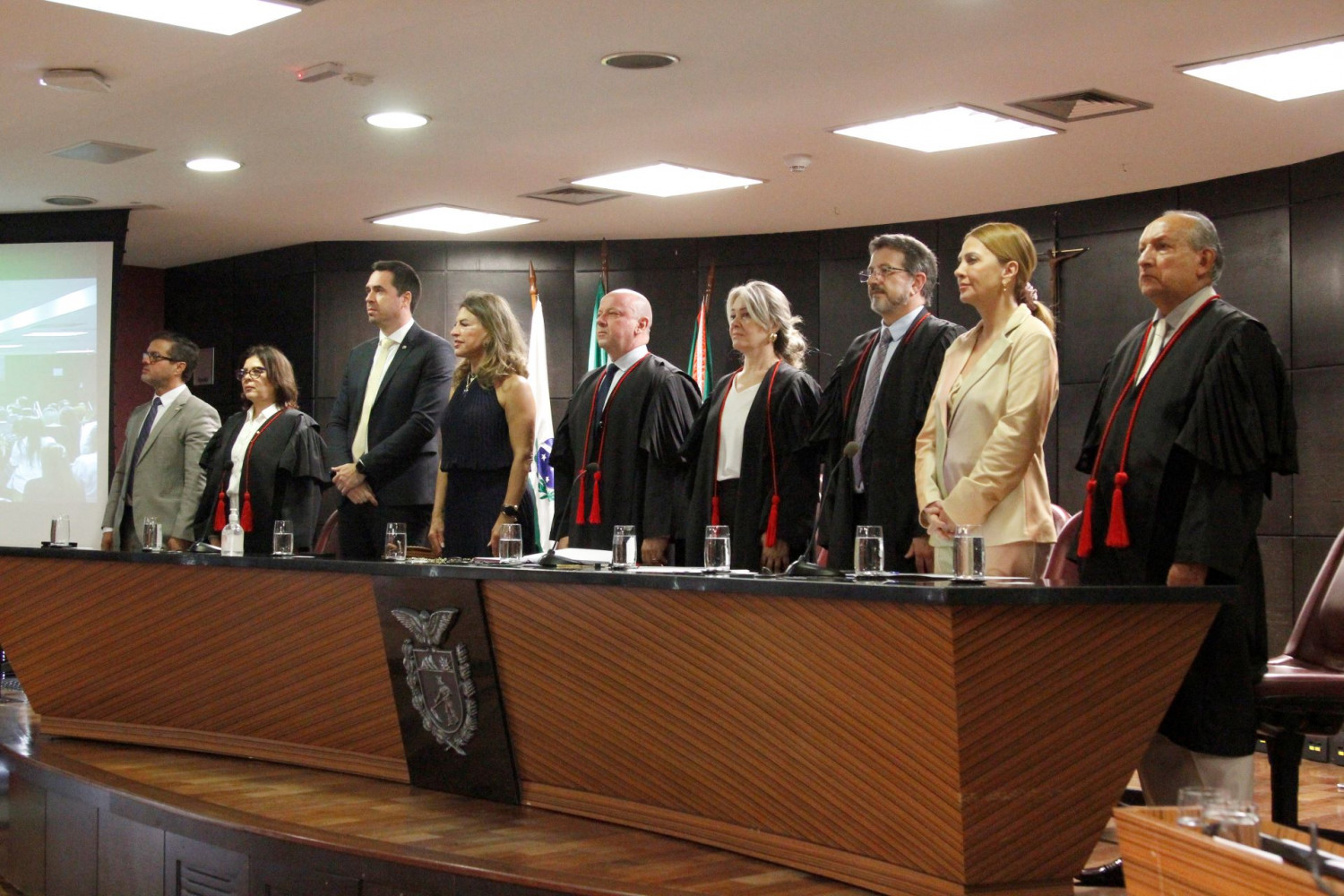 Além da Presidente, compuseram a mesa de autoridades o Procurador-Geral de Justiça, Francisco Zanicotti; a Presidente do Tribunal de Justiça do Paraná em exercício, Desembargadora Joeci Machado Camargo; a Subcorregedora-Geral do MPPR, Jacqueline Batisti; o Subprocurador-Geral de Justiça para Assuntos Jurídicos e Administrativos, Armando Antônio Sobreiro Neto; a Subprocuradora-Geral de Justiça para Assuntos de Planejamento Institucional, Terezinha de Jesus de Souza Signorini; o Procurador-Geral do Estado, Luciano Borges; o Defensor Público-Geral do Estado, Matheus Cavalcanti Munhoz; o Ouvidor-Geral do MPPR, João Henrique Vilela da Silveira, e o Promotor Adjunto da Subprocuradoria-Geral de Justiça para Assuntos Jurídicos e Assuntos administrativos, Cláudio Franco Félix.