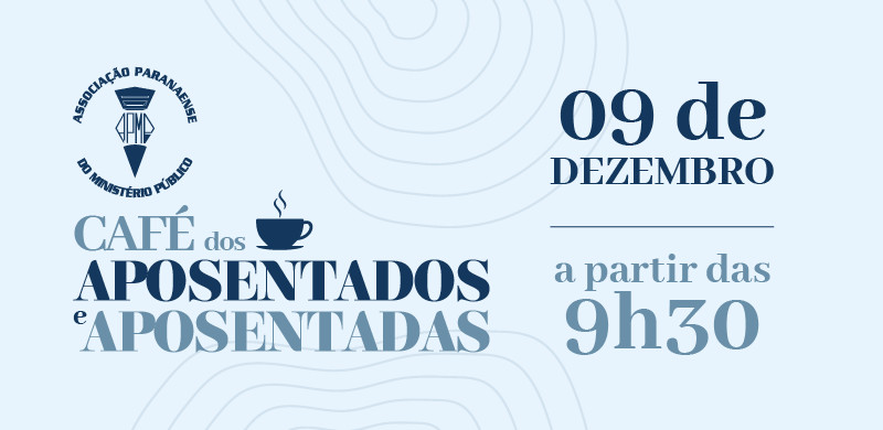 A APMP promove na segunda-feira (09/12) o “Café dos Aposentados e Aposentadas”. A programação começa às 09h30, no Salão Nobre da sede de Curitiba. As inscrições vão até o dia 04/12. Veja abaixo como confirmar sua presença!
