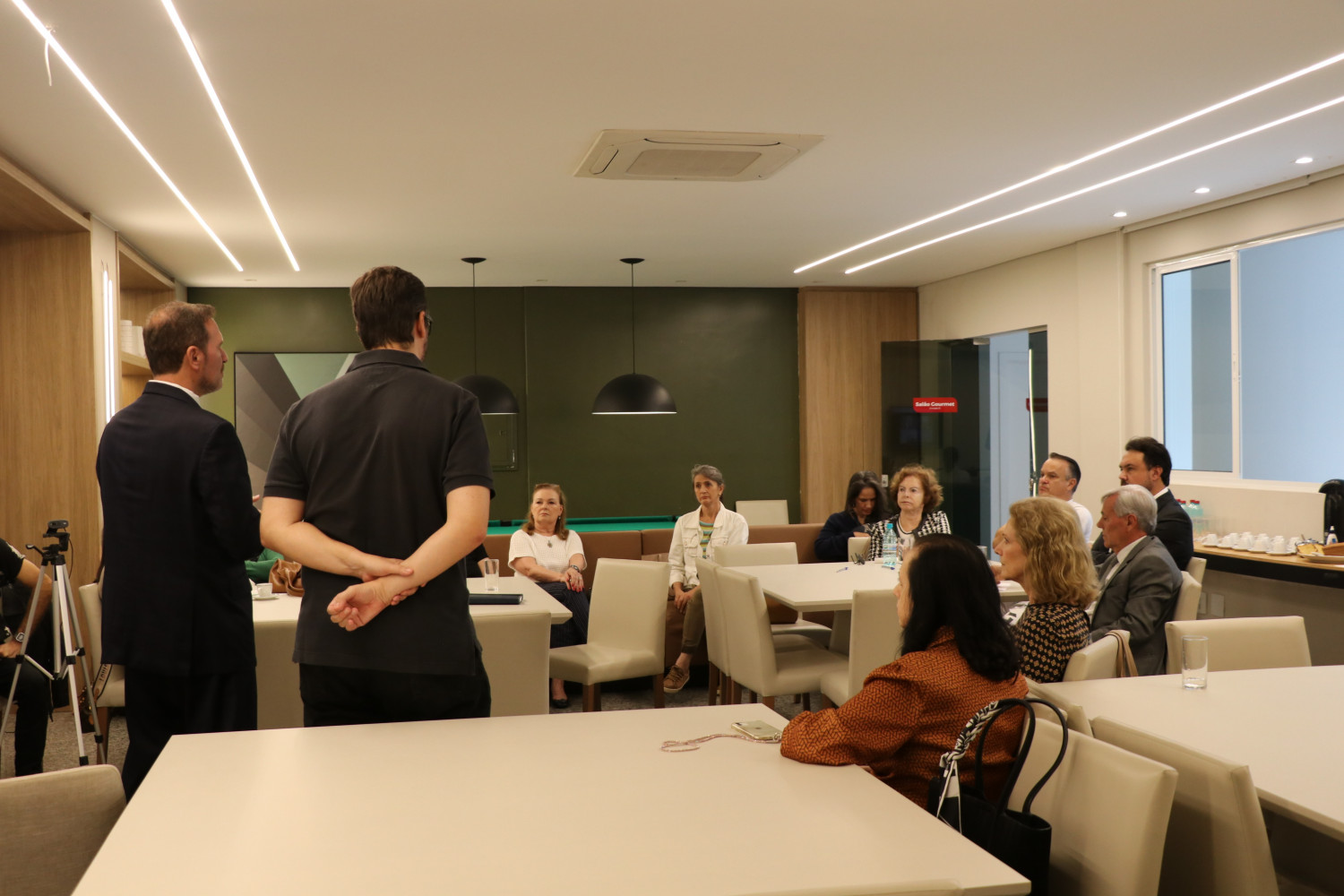 A reunião com as Pensionistas foi realizada no dia 31 de março, sob condução do Presidente Fernando da Silva Mattos, com a participação do 1º Vice-Presidente Rodrigo Leite Ferreira Cabral.