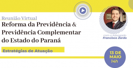 A APMP promoverá a reunião virtual “Reforma da Previdência e Previdência Complementar do Estado do Paraná - Estratégias de Atuação” na próxima quarta-feira, dia 13 de maio, às 14h.