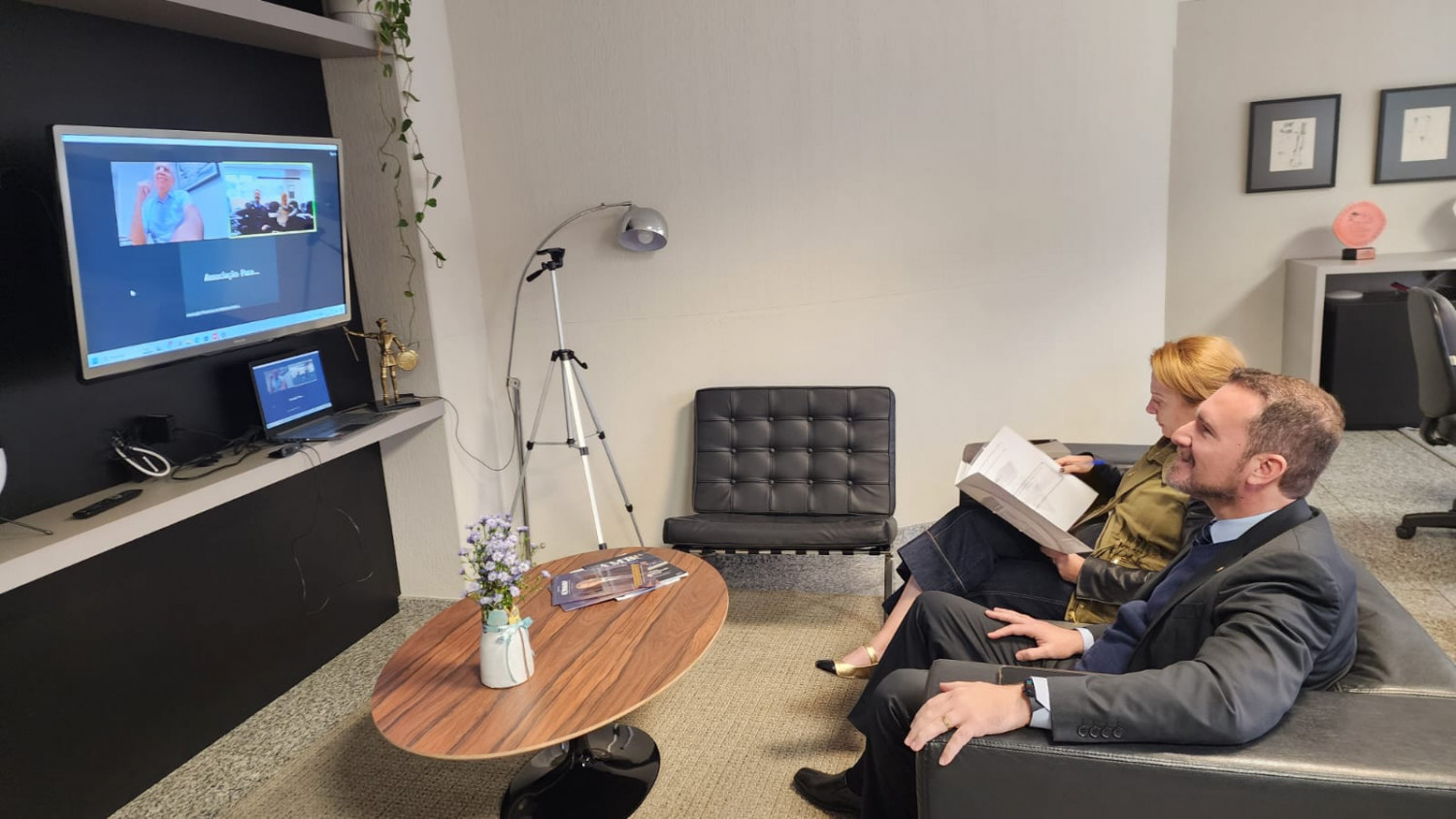 A presidente da APMP, Symara Motter, e o 1º Vice-Presidente, Fernando da Silva Mattos, realizaram, na tarde desta sexta-feira (26), uma reunião com o diretor da subsede de Umuarama, Marco Antonio de Souza. O encontro virtual serviu para tratar de assuntos relativos à unidade, como a utilização do espaço, melhorias e necessidade de manutenção.