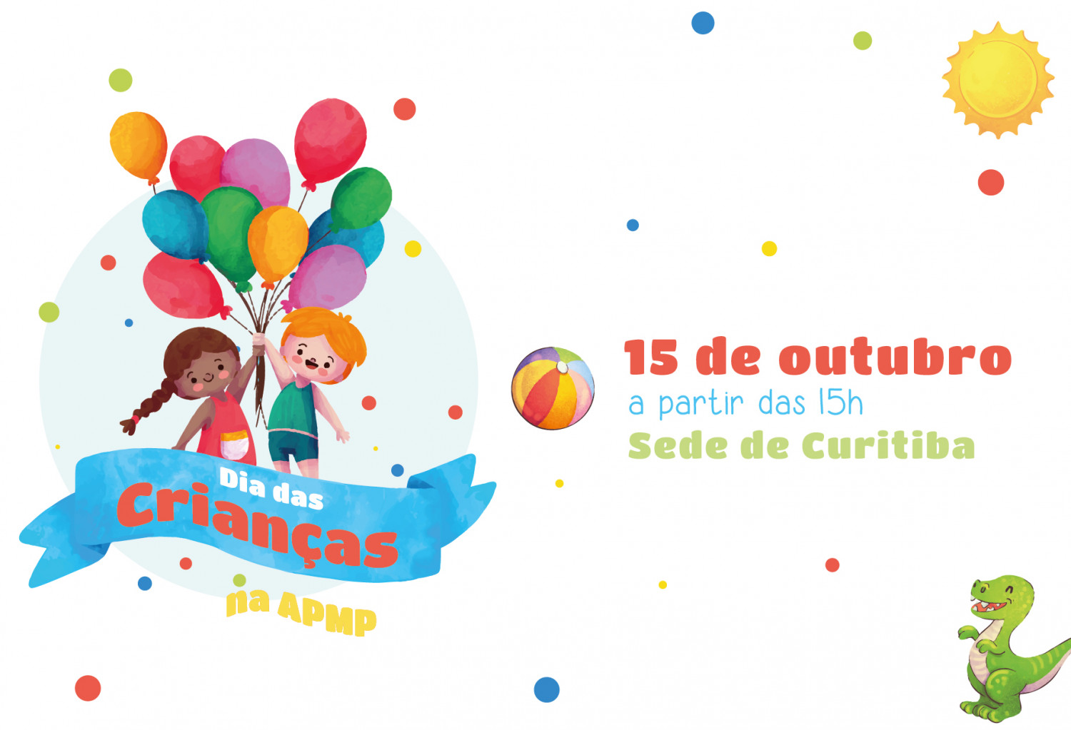 A Festa de Dia das Crianças da APMP deste ano já tem data confirmada. O evento ocorrerá no dia 15 de outubro, sábado, a partir das 15h, no Salão Nobre da APMP, em Curitiba. Todos os associados e dependentes estão convidados para participar desse dia de muita alegria e diversão.