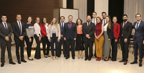 Na tarde desta terça-feira, dia 08 de outubro, o presidente da APMP, André Tiago Pasternak Glitz, recebeu os doze novos promotores substitutos no Salão Nobre da sede administrativa da APMP: Ana Righi Cenci, Antonio Cezar Quevedo Goulart Filho, Murilo Alan Volpi, Renan Mendes Rodrigues, Edson Ricardo Scolari Filho, Lucas Marques de Tavares Oléa, Claudio Prestes Junior, Eduardo Augusto Colombo Amado da Silva, Caroline Bertolino Mezzaroba, Kamila Cristine Vanelli, Gabriela Sanchez Ribeiro, e Camilla Tramujas Grosbelli. Os recém-empossados foram aprovados em concurso público realizado pelo MPPR neste ano, que contou com 4.422 inscritos, dos quais 45 foram aprovados.
