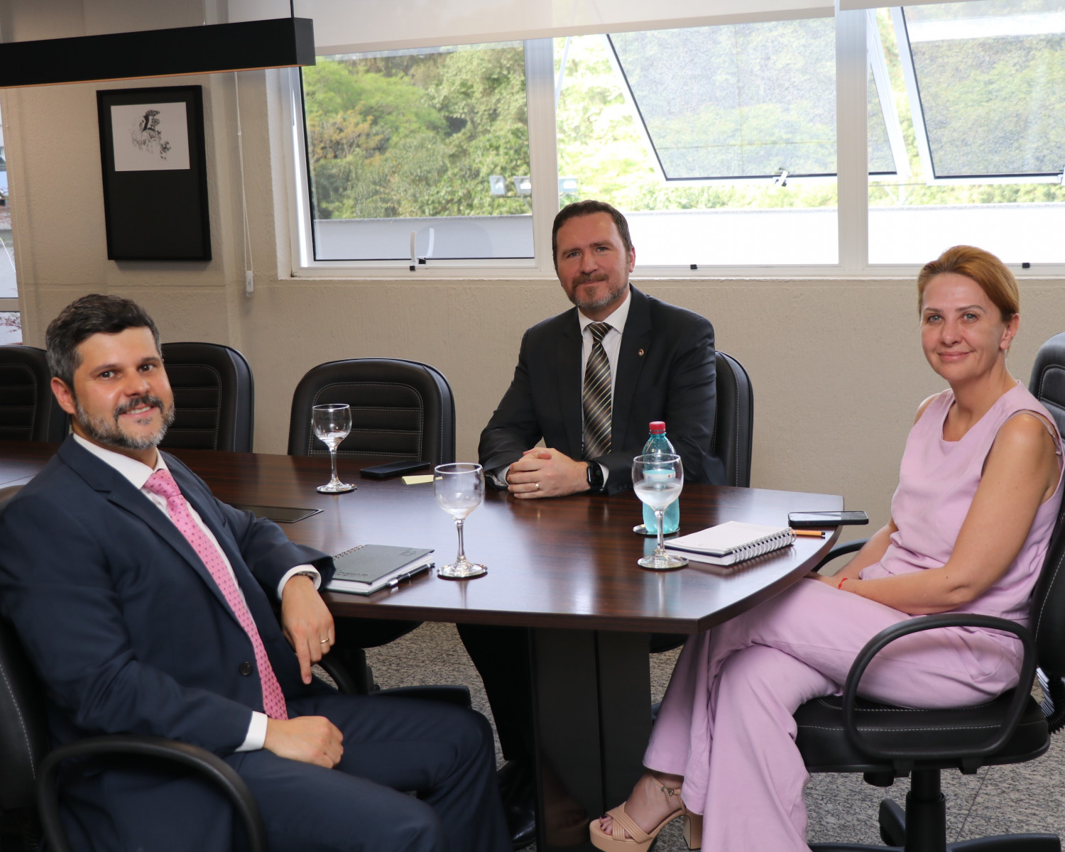 A Presidente da APMP, Symara Motter, e o 1º Vice-Presidente, Fernando da Silva Mattos, receberam, nesta quinta-feira (26), o Presidente da Associação das Defensoras e Defensores Públicos do Estado do Paraná (ADEPAR), Erick Lé Palazzi Ferreira. O encontro serviu especialmente para discutir estratégias conjuntas de atuação em face da tramitação da PEC nº 66/2023.