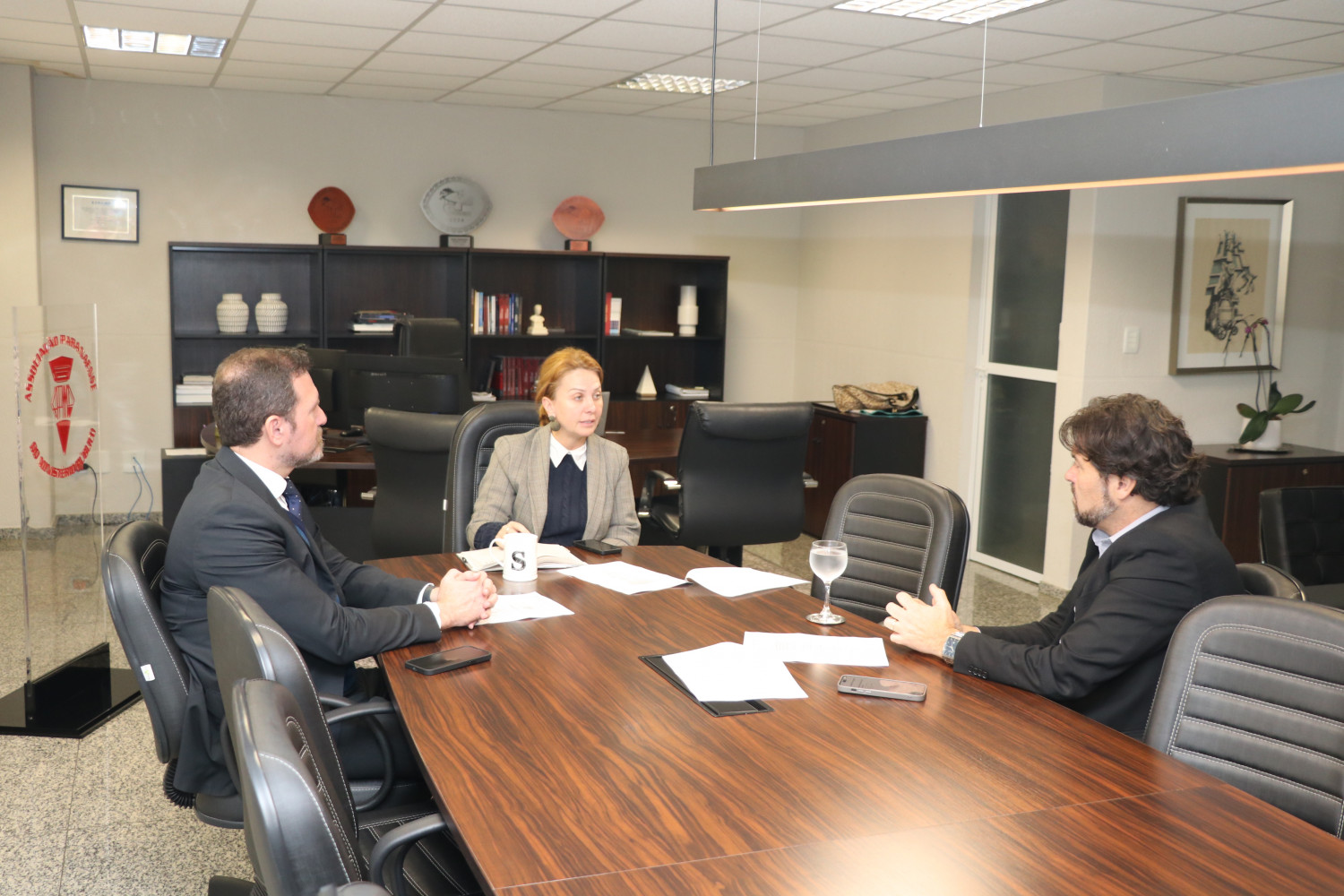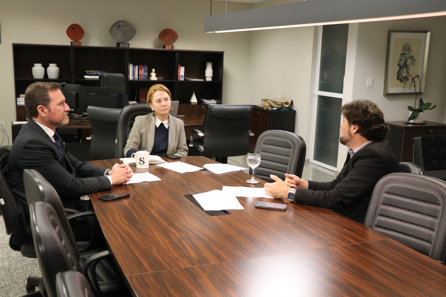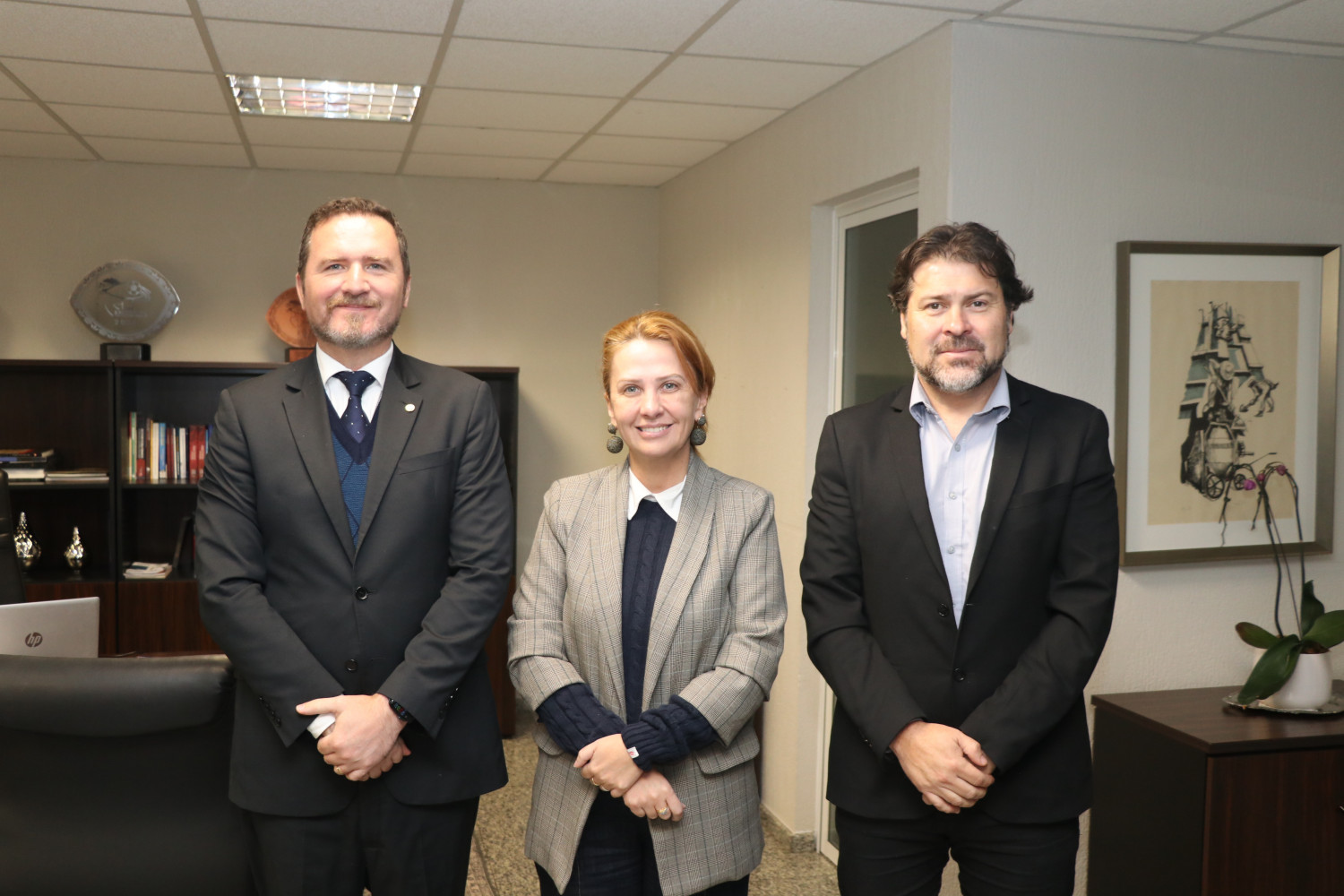 A Presidente Symara Motter e o 1º Vice-Presidente, Fernando da Silva Mattos, receberam, na última quinta-feira (19), o Presidente da Associação Beneficente Recreativa do Tribunal de Contas do Paraná (ABRTC), Ademar Moacir Cordeiro Junior. O encontro, na sede administrativa da APMP, serviu para tratar de projetos conjuntos e parcerias entre as entidades em prol de associados e associadas.