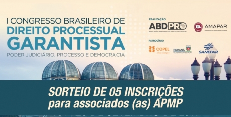 A APMP sorteará 05 (cinco) inscrições para o I Congresso Brasileiro de Direito Processual Garantista, que ocorrerá de 18 a 20 de setembro, no Grand Hotel Rayon, em Curitiba.