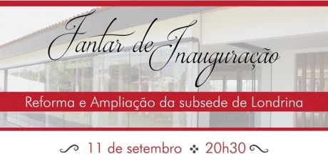 A Diretoria da APMP convida os associados para o Jantar de Inauguração da subsede de Londrina. O evento acontecerá no dia 11 de setembro, a partir das 20h30min.