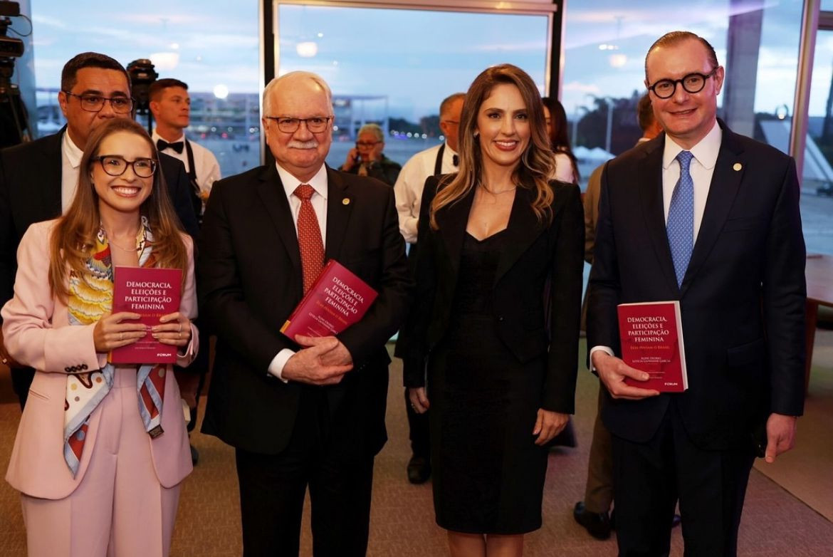 Um evento no Salão Nobre do Supremo Tribunal Federal, na noite desta quarta-feira (6), marcou o lançamento do livro “Democracia, Eleições e Participação Feminina – Elas pensam o Brasil”. A obra reúne pesquisas, reflexões e experiências de 50 mulheres nos campos do Direito Constitucional e Eleitoral e foi organizada pela associada da APMP Letícia Giovanini Garcia, em parceria com a secretária-geral do STF, Aline Osorio.