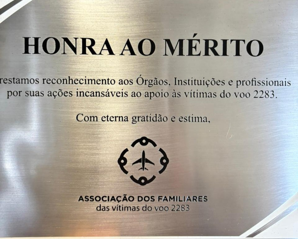 A cerimônia de homenagem ocorreu em Vinhedo/SP, organizada pela Associação dos Familiares das Vítimas do Voo 2283, e reconheceu profissionais e servidores públicos que atuaram para mitigar os efeitos do acidente. Na ocasião, a associada recebeu uma placa de honra ao mérito em reconhecimento à sua atuação, bem como à de sua equipe, no apoio prestado aos familiares das vítimas.