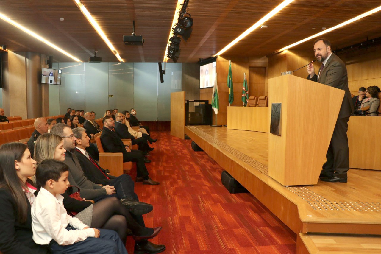 O Corregedor-geral da Policia Militar, Coronel Dorian Nunes Cavalheiro homenageou o procurador empossado entregando-lhe uma placa de agradecimento em nome da Policia Militar do Paraná. “Ele sempre será o nosso promotor. Ele faz parte da corporação. Nos tornamos irmãos nesse caminho que tomamos juntos”.