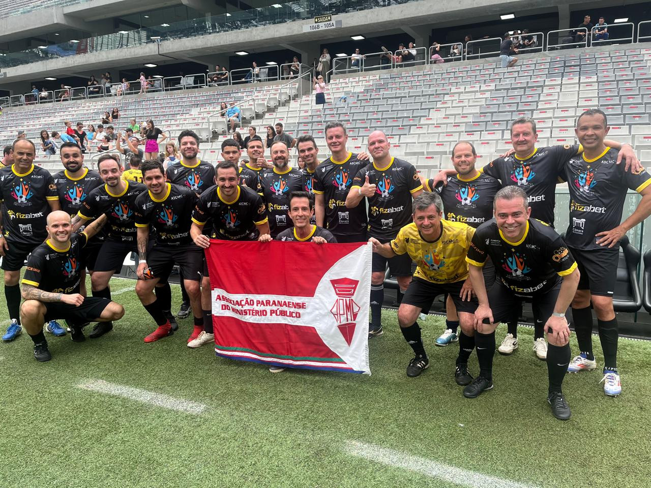 No último domingo (15), a APMP participou de um amistoso beneficente contra a equipe da Defensoria Pública, realizado na Ligga Arena. O evento fez parte do projeto “Jogar e Fazer o Bem 2024”, uma iniciativa voltada para a promoção de ações solidárias por meio do esporte.