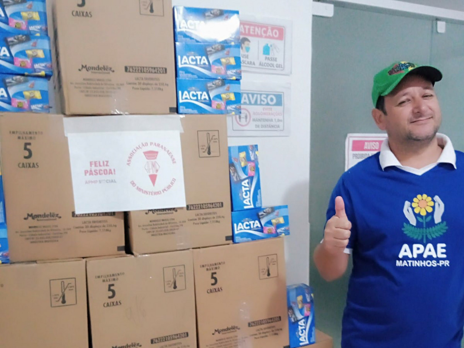 Já em Matinhos, as doações foram destinadas para a APAE Matinhos, instituição que há 33 anos atende pessoas com deficiência intelectual e múltiplas deficiências nas áreas educacional, assistência social e Saúde. As 313 caixas de bombons foram entregues pelo funcionário da APMP, Wagner Pereira, para o professor da instituição Marco Aurélio Dreviani Silva, que recebeu os chocolates em nome da diretora auxiliar, Marilene Kinal, da diretora pedagógica, Ana Cláudia Viana Silva, e da presidente, Silvia Regina Winheski.