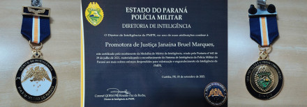 Os Associados da APMP Janaína Bruel Marques e Bruno Sérgio Galatti foram condecorados, na última sexta-feira (5), com a Medalha do Mérito da Inteligência, concedida pela Polícia Militar do Paraná (PMPR).