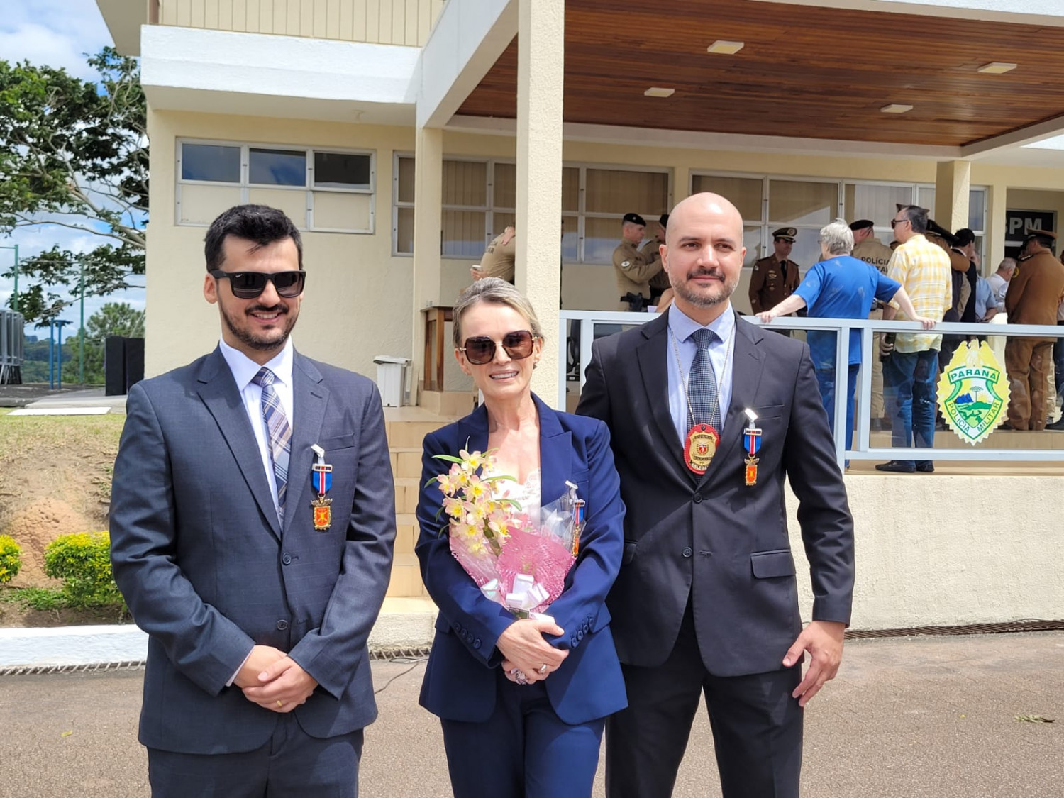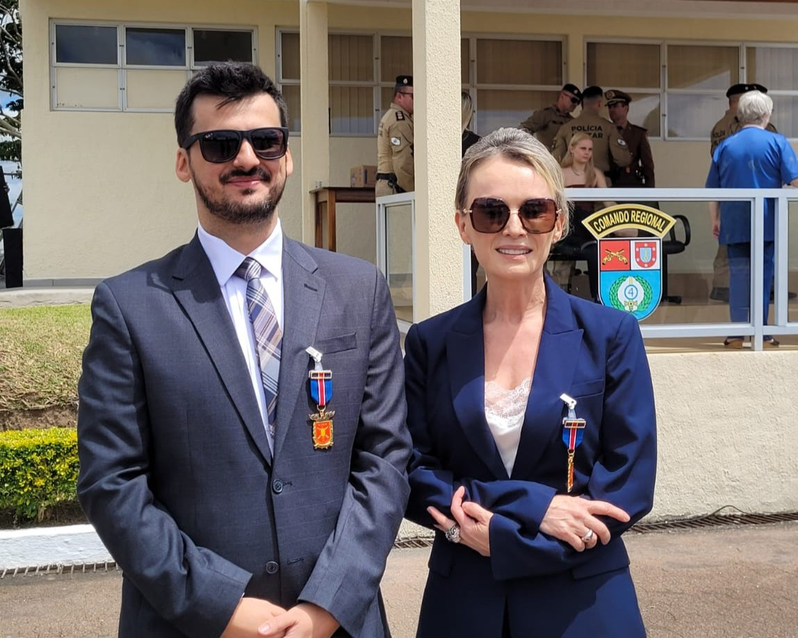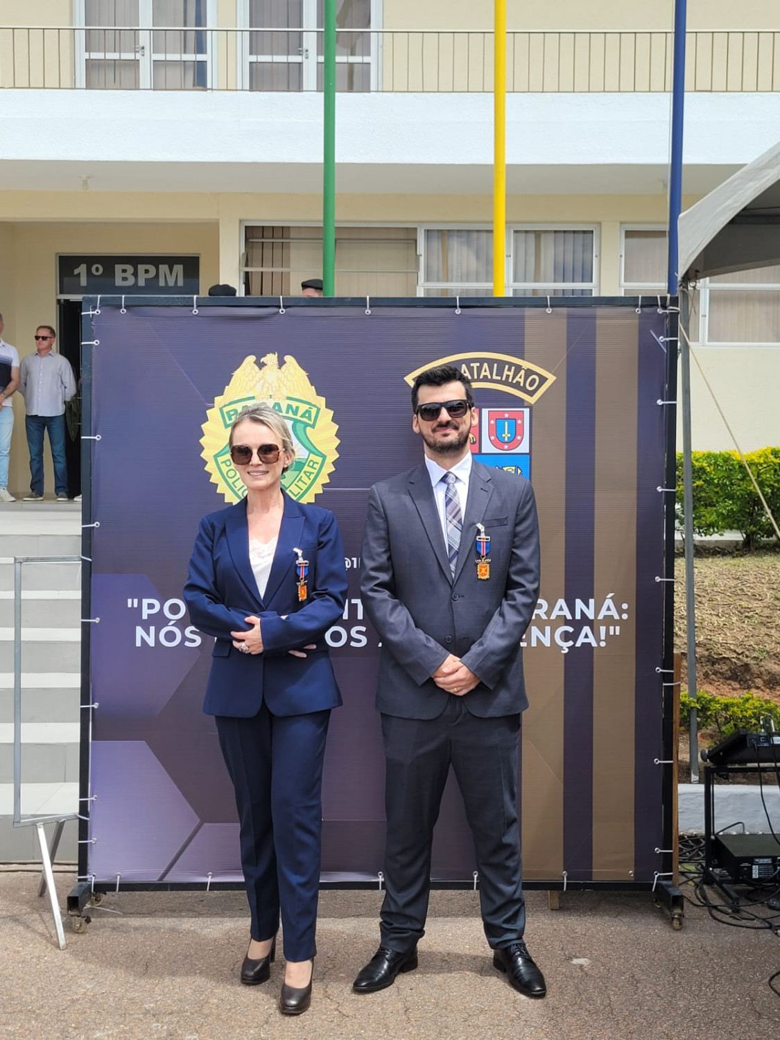 Na última sexta-feira (7), os associados Suzane Maria Carvalho do Prado e João Eduardo Antunes Mirais, titulares da 9ª e da 10ª Promotoria de Justiça de Ponta Grossa, respectivamente, foram agraciados com a Medalha Heróis dos Campos Gerais, da Polícia Militar do Paraná. A cerimônia ocorreu na sede do 4º Comando Regional da PM.