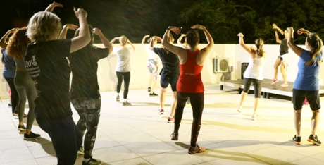 A aula foi ministrada pela professora Rebecca, da academia World Gym, que, além da zumba, fez todas dançarem vários ritmos, como reggaeton, salsa, quizomba (dança africana), movie dance e outras danças latinas.