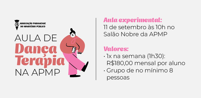 Na próxima quarta-feira (11), a APMP promove, no salão nobre da sede administrativa, uma aula experimental* de Dançaterapia. O método inclui a prática de ritmos, exercício aeróbico, consciência corporal, alongamentos, relaxamento e atividade de baixo impacto, para trabalhar corpo e mente. A atividade será guiada por Andréa Soares, que é professora e terapeuta, e começa às 10 horas. Podem participar associadas, pensionistas e dependentes. Não é preciso fazer inscrição prévia.