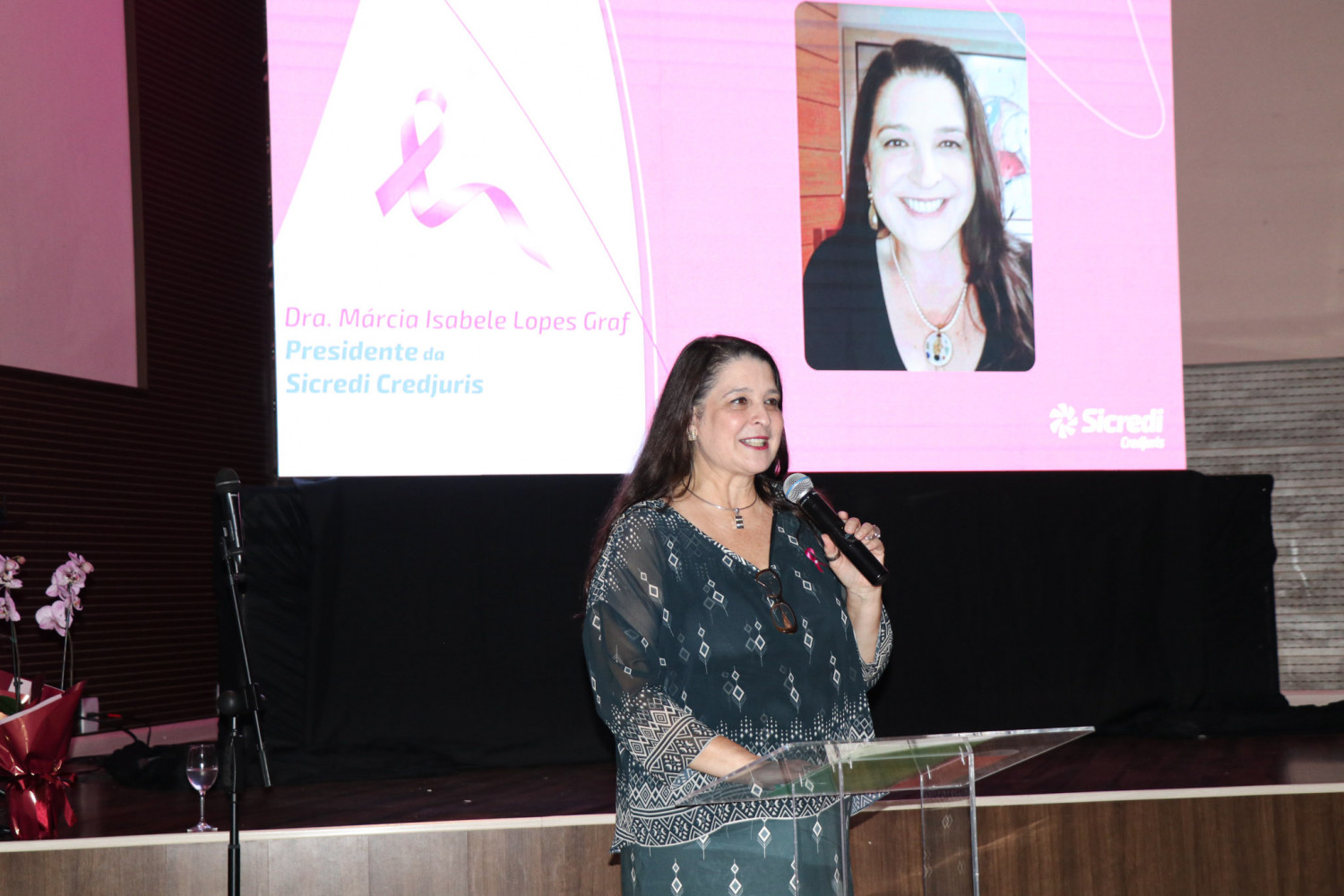 O encontro foi aberto pela presidente do Sicredi Credjuris e promotora de Justiça, Márcia Isabele Lopes Graf, que saudou os presentes. Na sequência, a presidente da APMP, Symara Motter, destacou a necessidade da conscientização sobre a prevenção do câncer de mama, enaltecendo a importância do momento. “Esse evento salva vidas. A informação sobre a prevenção e um possível diagnóstico precoce são fundamentais e é esse o principal motivo de estarmos reunidas nesta tarde”, disse Motter.