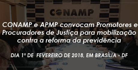 A Associação Nacional dos Membros do Ministério Público (CONAMP) e a Associação Paranaense do Ministério Público (APMP) convocam Promotores e Procuradores de Justiça para um ato público, em Brasília/DF, contra a reforma da previdência (PEC 287/16) e pela valorização das carreiras do Ministério Público e da Magistratura.