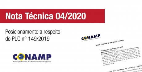 A Associação Nacional dos Membros do Ministério Público (CONAMP) publicou nesta quinta-feira, 02 de abril, Nota Técnica com posicionamento a respeito do Projeto de Lei Complementar (PLC) n° 149/2019.