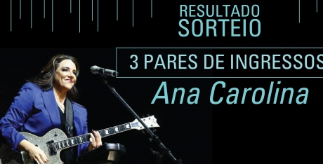 Os associados ganhadores do sorteio dos pares de ingressos para o show da cantora Ana Carolina são: Silvia Skaetta Nunes, José de Oliveira Junior e Valeria Feres Borges.