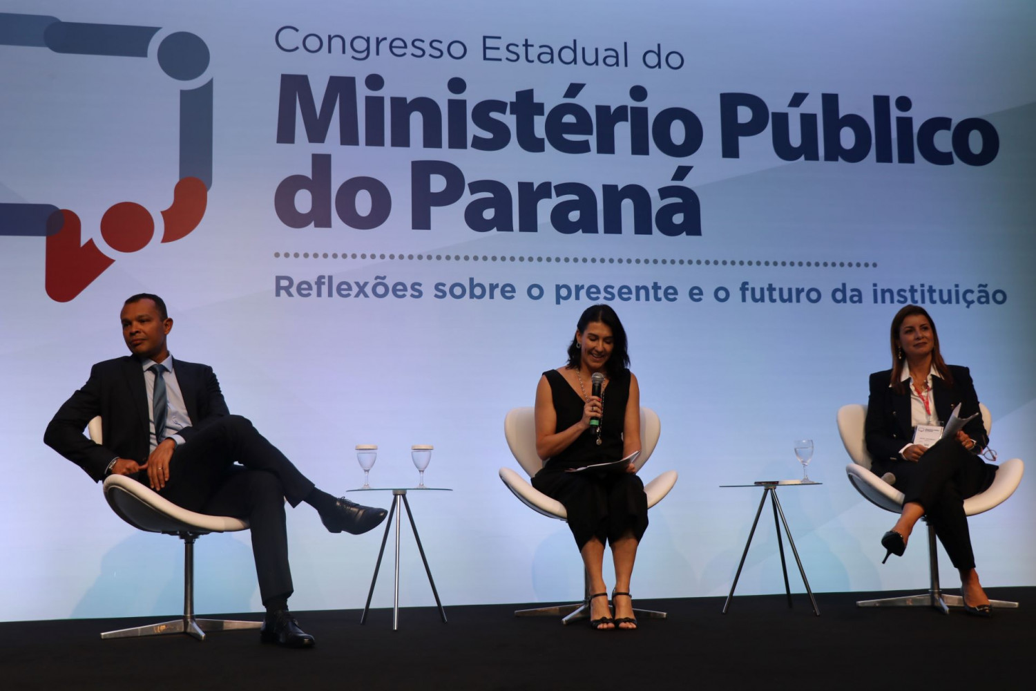 O último momento de programação científica do Congresso Estadual do Ministério Público do Paraná ocorreu nesta manhã deste sábado (17). Após o Momento Associativo Institucional, o evento recebeu a palestra “Ministério Público, Prevenção, Persecução e Tecnologia / Inovação”, ministrada pela promotora de Justiça do Rio de Janeiro, Simone Sibilio do Nascimento. Na sequência, outras três salas temáticas de discussão encerraram a manhã.