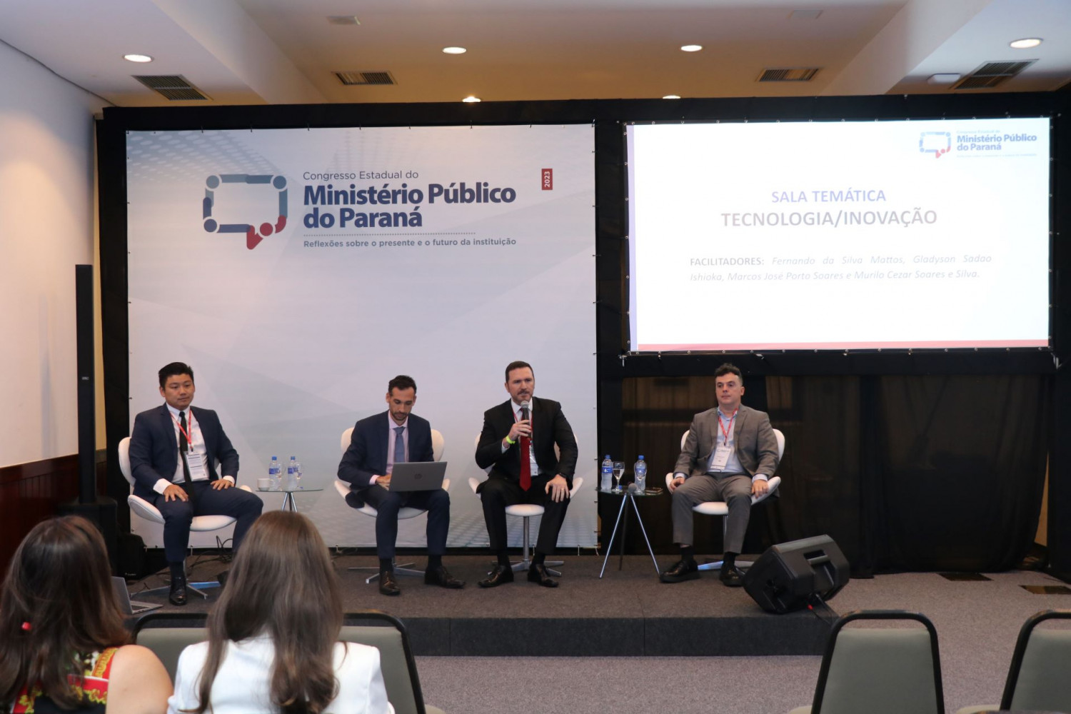 A sala que tratou do tema Tecnologia / Inovação foi a de número três e teve como facilitadores: o Diretor de Defesa de Prerrogativas da Associação e Coordenador de Assuntos Institucionais do Ministério Público do Paraná (MPPR), Fernando da Silva Mattos; o promotor de Justiça, Murilo Cezar Soares e Silva; o promotor de Justiça, Marcos José Porto Soares; e o promotor de Justiça, Gladyson Sadão Ishioka.