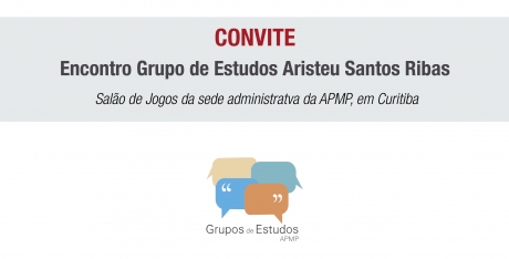 O Grupo de Estudos Aristeu Santos Ribas, de Curitiba, convida, por meio de sua coordenadoria, todos os associados da APMP para o encontro que ocorrerá na próxima quinta-feira, dia 29 de agosto, às 19h, no Salão de Jogos da sede administrativa da Associação, localizada na Rua Mateus Leme, 2018, Centro Cívico, em Curitiba.