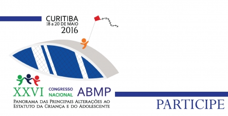 Será realizado de 18 a 20 de maio de 2016, o XXVI Congresso da Associação Brasileira de Magistrados, Promotores de Justiça e Defensores Públicos da Infância e da Juventude – ABMP, que traz o tema “Panorama das Principais Alterações Legislativas ao Estatuto da Criança e do Adolescente”. Neste ano, o evento acontece no Centro de Eventos Sistema FIEP, em Curitiba.