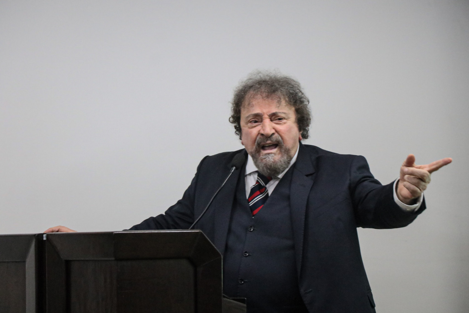 Na sequência, foi a vez do coordenador do curso, Marcelo Balzer, fazer a abertura do evento, com uma especial homenagem a Munir Gazal. Na introdução de seu discurso, Balzer contou uma história de uma família árabe, realizando um paralelo com Gazal. Em seguida, ele apontou que o nome “Munir” traz consigo dois verbos importantes, que se relacionam diretamente com a história do procurador de Justiça aposentado no Ministério Público. “O nome Munir é um presságio, pois nasceu para UNIR e MUNIR. Unir os promotores que atuam no Tribunal do Júri para uma reflexão sobre essa Instituição e nos “Munir” de conhecimento e experiência”, disse Balzer.