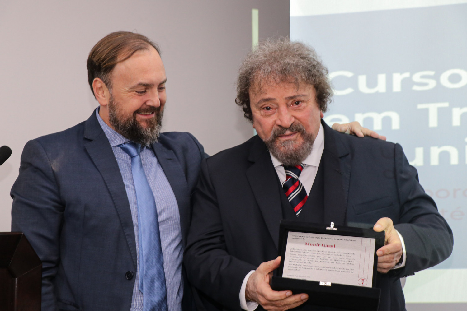 “Homenagem da Associação Paranaense do Ministério Público ao associado Munir Gazal pela combativa, honrosa e profícua atuação como membro do Ministério Público do Paraná, ao longo de mais de 40 anos. Nosso reconhecimento por ser um dos mais notáveis Promotores de Justiça da história do Ministério Público Araucariano a atuar no Tribunal do Júri, na defesa intransigente da vida. Seu trabalho exemplar e seu profundo conhecimento no Júri tornou-se inspiração e referência para várias gerações de associados!”.