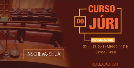 O Instituto Brasileiro de Aperfeiçoamento Jurídico (IBAJ) promoverá o tradicional “Curso do Júri”, com o Prof. Dr. Edilson Mougenot Bonfim. O curso, já ministrado a milhares de promotores de Justiça de todo Brasil, ocorre nos dias 02 (à noite) e 03 (durante o dia) de setembro deste ano, no Bourbon Convention Hotel, em Curitiba. Será fornecido certificado aos participantes.