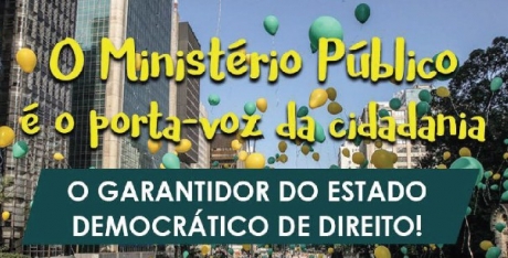 Parabéns a todos os membros e servidores do Ministério Público que, diariamente, em suas comarcas e promotorias, trabalham com o objetivo de garantir que os direitos e princípios propostos pela Constituição Federal e para resgatar a moralidade e a probidade no País. MINISTÉRIO PÚBLICO FORTE, SOCIEDADE PROTEGIDA!